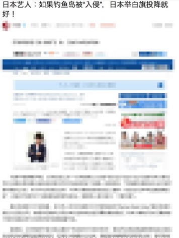日本艺人:若钓鱼岛被”入侵” 举白旗投降就好